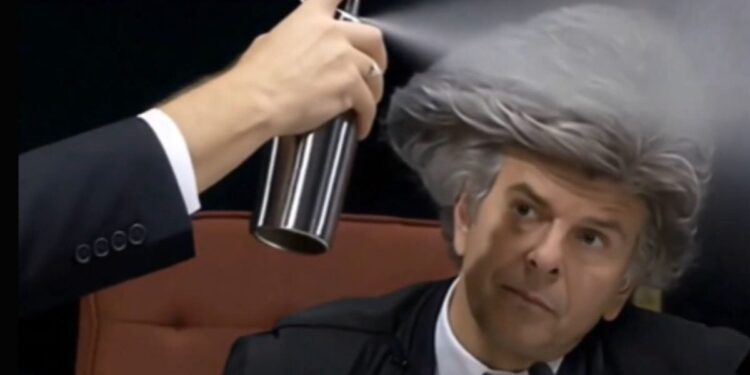 – Gostei quando o senhor chamou a Corte Suprema de incompetente. É uma pena Jair Bolsonaro não poder ligar pessoalmente para o senhor para agradecê-lo. Se tivesse aqui, ele, com certeza diria: “chupa, xandão!”. Todos nós da extrema direita estamos do seu lado, ministro Fux. Hoje mesmo vou dar o seu número para um amigo meu que fabrica perucas aqui nos Estados Unidos.
