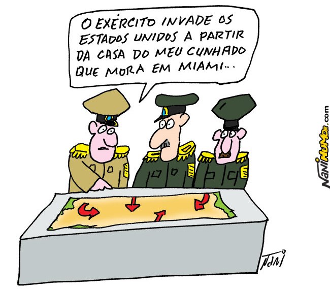 – Presidente, o senhor acha mesmo uma boa ideia ameaçar os EUA? Eles tem o “Rambo” e nós temos o Mourão.