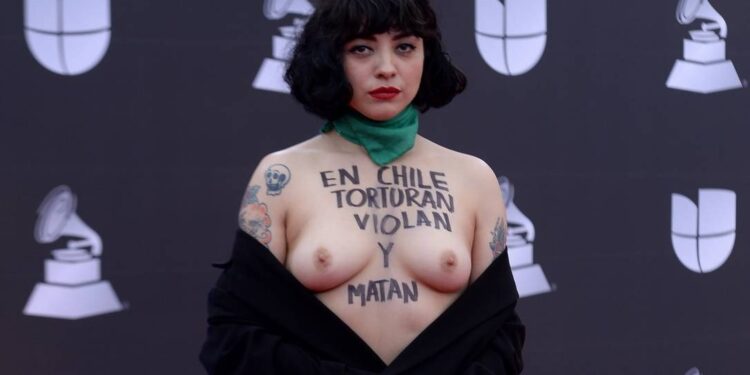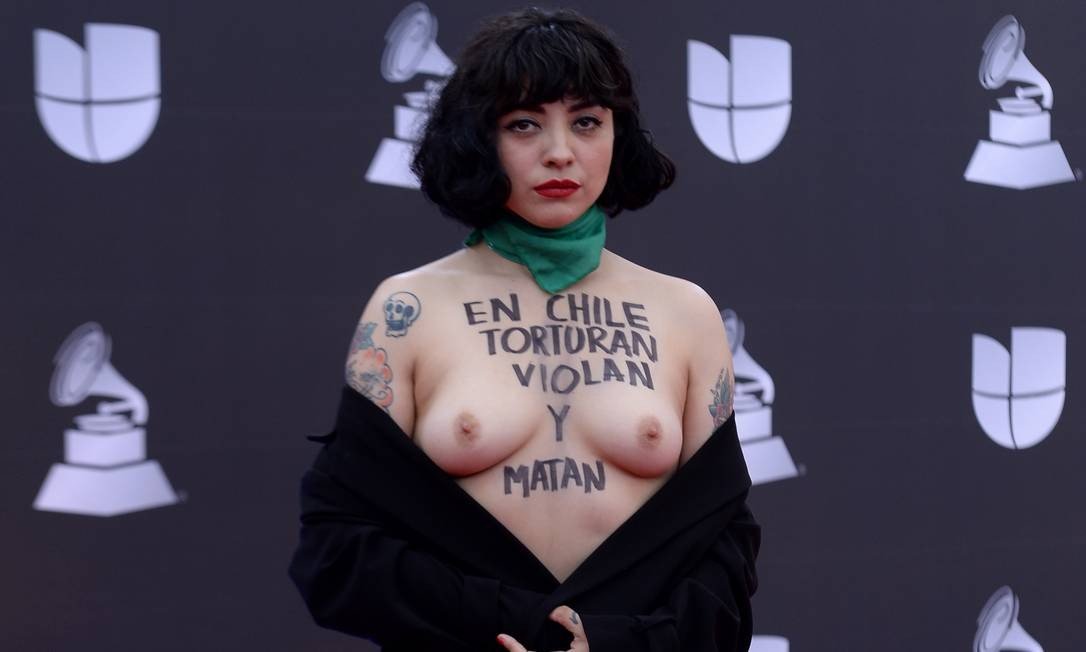 Vencedora do Prêmio Grammy Latino, em sua 20ª edição, na categoria Melhor Álbum de Música Alternativa, a cantora chilena Norma Monserrat Bustamante Laferte, conhecida pelo nome artístico Mon Laferte, exibiu nos seios mensagem de protesto, ao passar pelo tapete vermelho da festa do evento, que aconteceu em Las Vegas, nos EUA, na noite de quinta-feira, 14/11, na MGM Grand Garden Arena. No palco, com o troféu nas mãos, ela agradeceu à equipe de trabalho, aos fãs e disse “Isto é para o Chile”. Ainda leu uma mensagem a pedido de outra cantora chilena, na qual abordou os atuais protestos contra as ações políticas do governo.