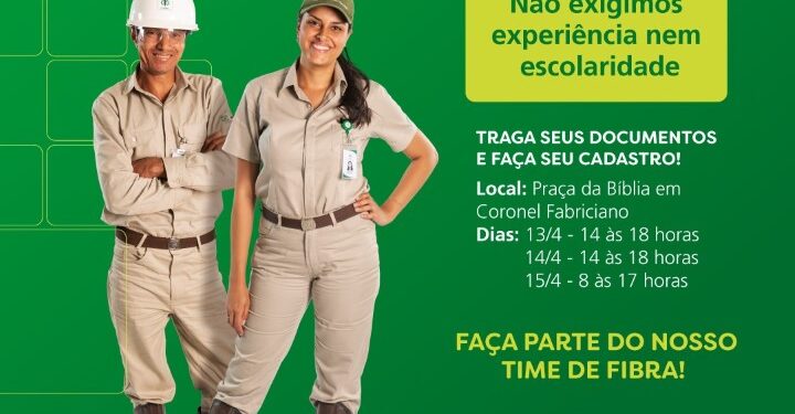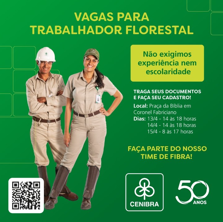 A CENIBRA promoverá uma ação, em Coronel Fabriciano, para recrutamento de profissionais que desejam fazer parte do quadro de empregados.