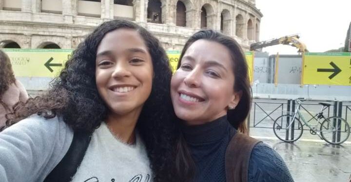 Maria Clara e a professora Kele Frossard. (Divulgação).