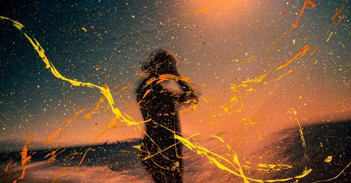 Se o lápis discorre pelo papel, subindo e descendo como as chuvas que descem do céu, as cores, essas cores que vivem perambulando pelo mundo, se tornam cativas do meu desejo de buscar alguém que não conheço, mas que existe aqui dentro, quando os olhos fecho.
