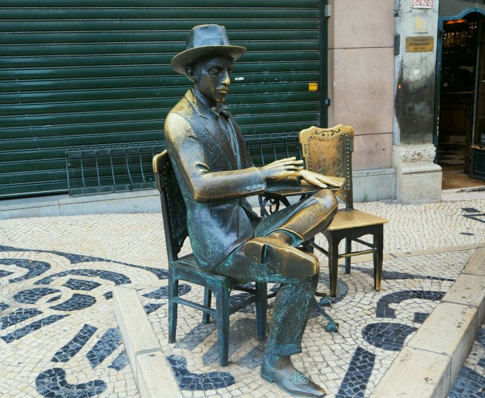 Em terras luzitanas, o escritor Fernando Pessoa – uma das figuras mais importantes da história de Portugal – é onipresente. Está em todos os lugares. Sua foto está em todos os cantos de Lisboa. Nas ruas, nas lojas, nos bares, nas livrarias, nos cartões postais e até, pasmem, no dinheiro.