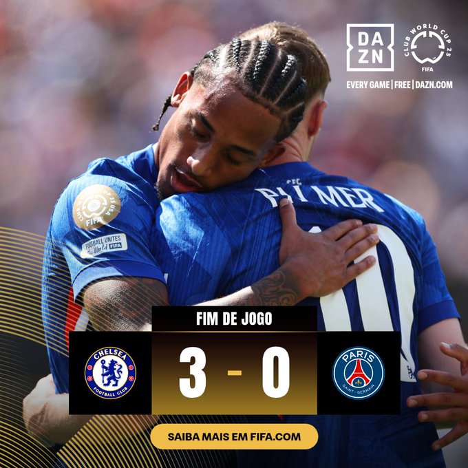 A vitória marca o segundo título mundial da história do clube inglês — o primeiro foi em 2021, no antigo modelo com sete participantes. O PSG, campeão europeu da temporada, era favorito, mas viu o Chelsea dominar o jogo do início ao fim.