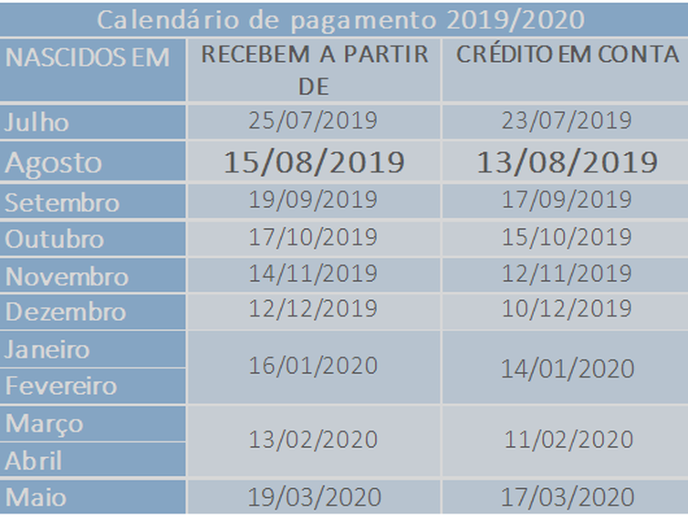 O abono salarial do calendário 2019/2020 do Programa de Integração Social (PIS ) e do Programa de Formação do Patrimônio do Servidor Público (Pasep), para os beneficiários nascidos em agosto, já está liberado desde essa quinta-feira (15).
