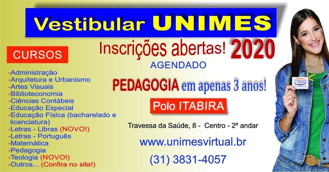 As bolsas de estudos ofertadas são limitadas e com percentuais diferenciados visando a formação de novas turmas para início letivo no primeiro semestre de 2020. Os interessados devem comparecer pessoalmente, até o dia 30 de novembro, no endereço Travessa da Saúde, n° 8, Edifício Abílio Couto, no centro de Itabira (próximo a Igreja da Saúde). O atendimento é de segunda a sexta-feira das 14h às 20h. Outras informações pelos telefones (31)3831-4057 ou 98509-2044.
