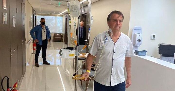 Pela manhã, Bolsonaro havia divulgado uma foto em seu Instagram na qual aparece caminhando no corredor do hospital segurando o suporte para soro. “Em breve de volta a campo, se Deus quiser!”, escreveu na legenda da imagem.