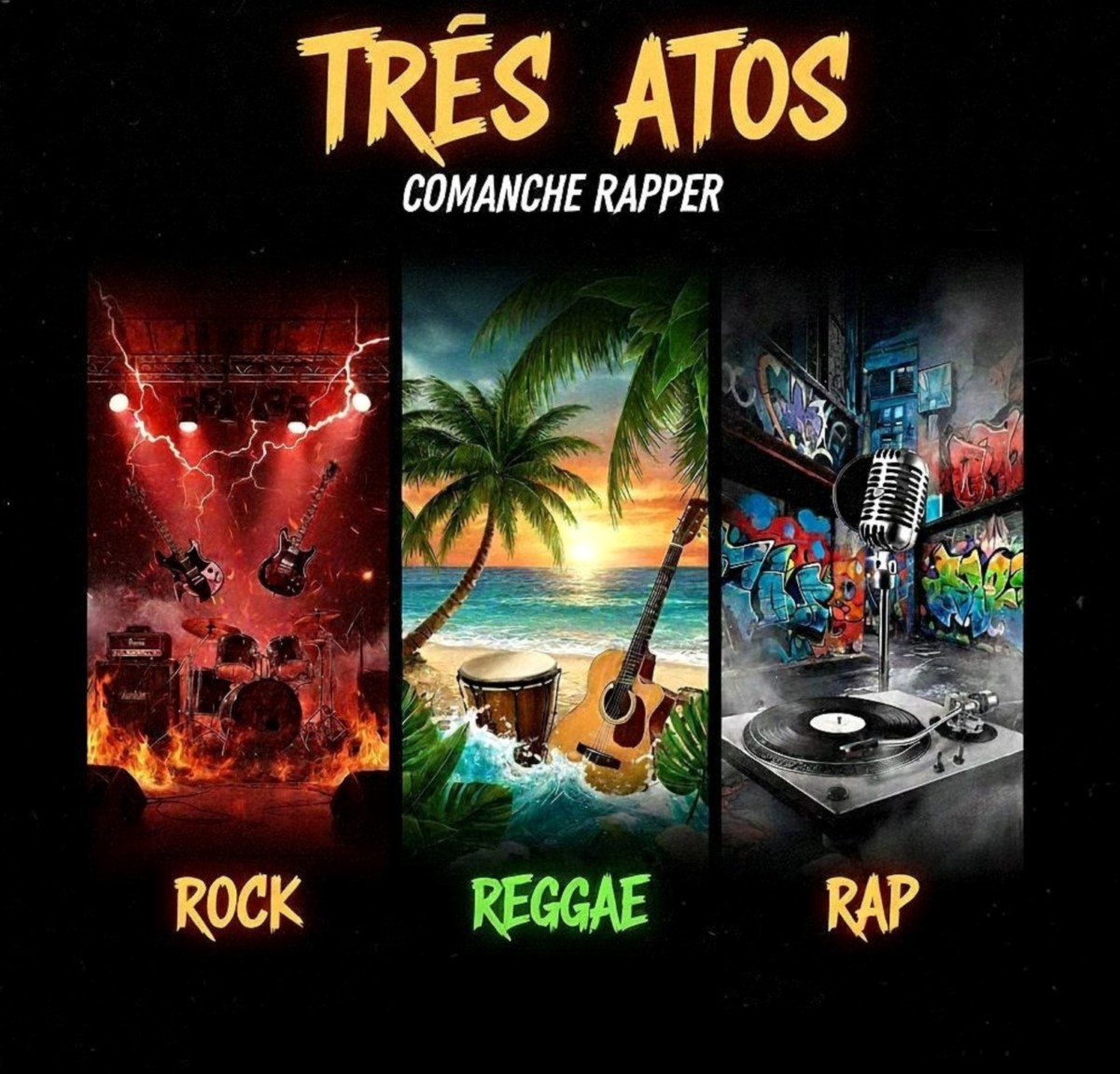 O rapper carioca Comanche lançou, na última sexta-feira (13), o álbum “Três Atos”, projeto já disponível nas principais plataformas digitais. Com três faixas inéditas, o trabalho mistura rap, rock e reggae e traz letras que dialogam com temas sociais, ambientais e culturais.