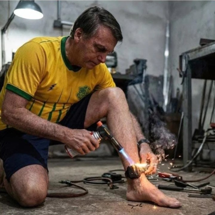 - Flávio, eu preciso sair dessa maldita prisão domiciliar! Eu não estou aguentando mais isso daê, talquei! É uma cuestão humanitária, talquei. Eu tenho doença do refluxo gastroesofágico; bico de papagaio; esofagite; gastrite; risco de episódios súbitos de obstrução intestinal; dor abdominal intensa; pneumonia bacteriana recorrente; alterações parenquimatosas pulmonares; sinais de congestão pulmonar; pequeno derrame pleural bilateral; soluços incoercíveis; falta de ar; desmaios; hipertensão; doença aterosclerótica do coração e apneia do sono. Nem a Michele aguentou ficar presa comigo dentro dessa casa. Ela só vive na rua, com o maquiador. Sem falar nessa maldita tornozeleira eletrônica. Tenho ouvido vozes vindas de dentro dela. Ontem ela passou o dia todo sussurrando: “Brasileirão Betano…” E essa luzinha piscando, dia e noite, não me deixa dormir. O quarto à noite parece uma boate com essa luz piscando.